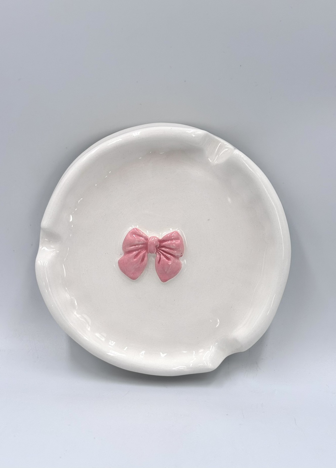 Κεραμικό Τασάκι σε στρογγυλό σχήμα με ανάγλυφο λουλούδι στο κέντρο.
